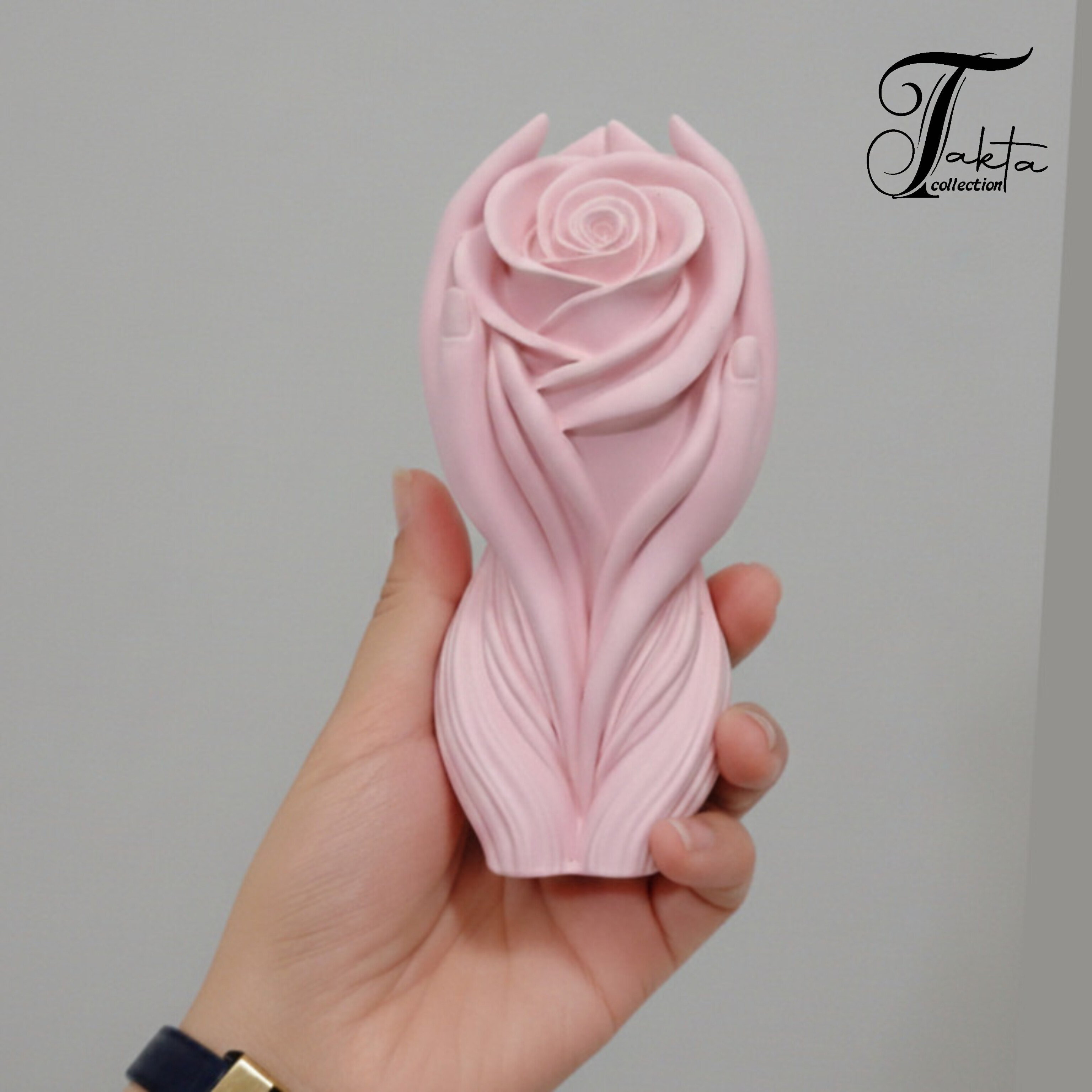 قالب سیلیکونی رز اندامی یک قالب ژورنالی و بسیار شیک است که ترکیبی از ظرافت مجسمهسازی و رومانتیک بودن را در خود دارد. فرم نهایی کار یک گل رز برجسته در مرکز است که از دو طرف با دو دست نگهداشته شده — نمای جلو نشاندهنده گل در آغوش دو دست است و نمای پشت، ساختار دستها را در کنار هم نمایش میدهد؛ تصویری که هم لطافت و هم حس انسانی و احساسی را منتقل میکند.