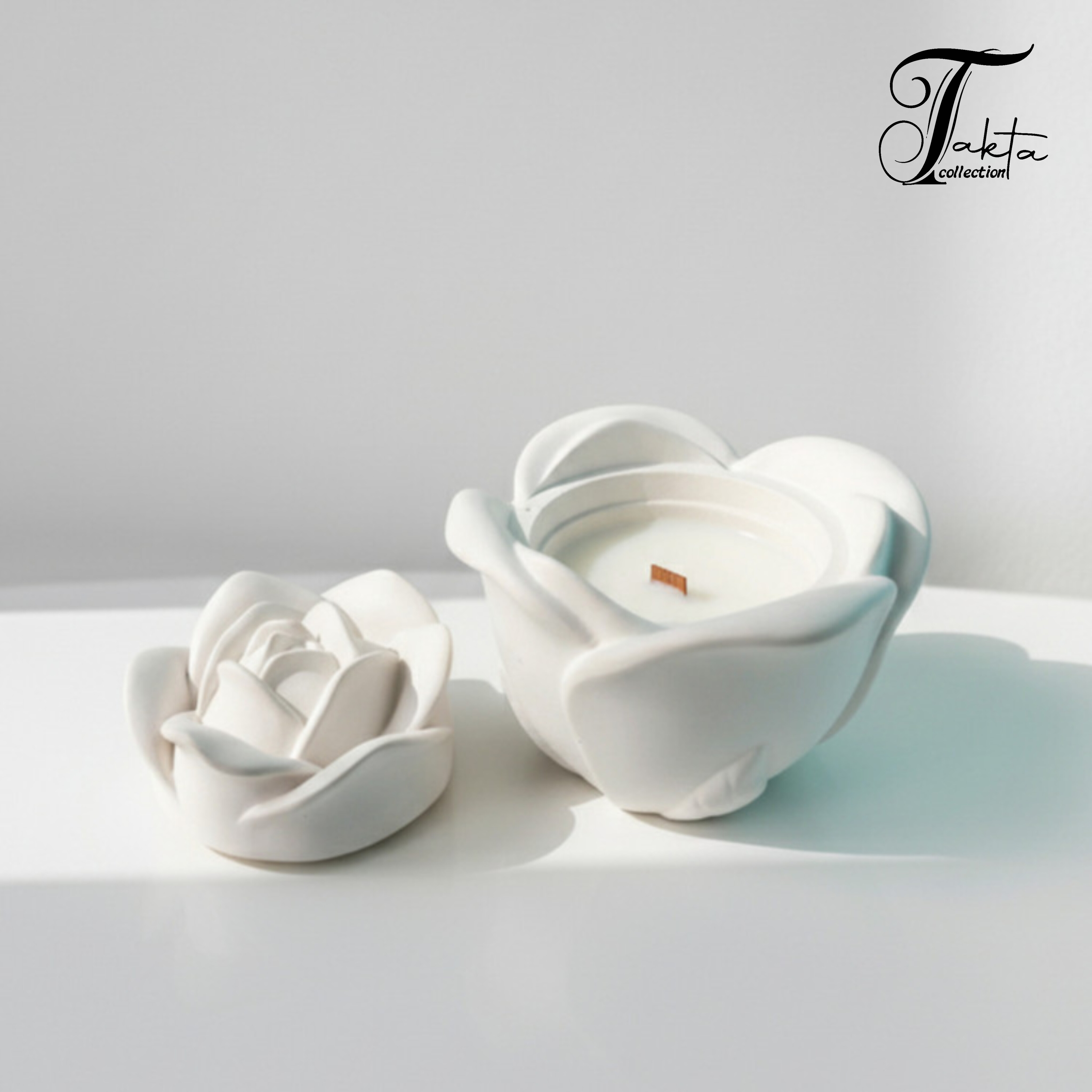 شات شمع رز با فیتیله چوبی یا فیتیلهای ساده؛ مناسب هدیه دادن و ستسازی.