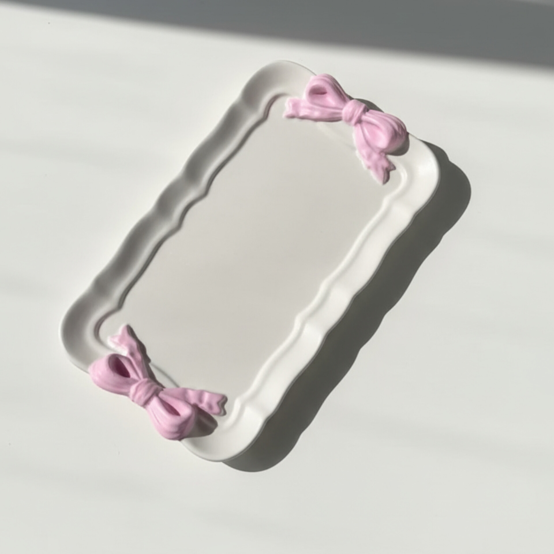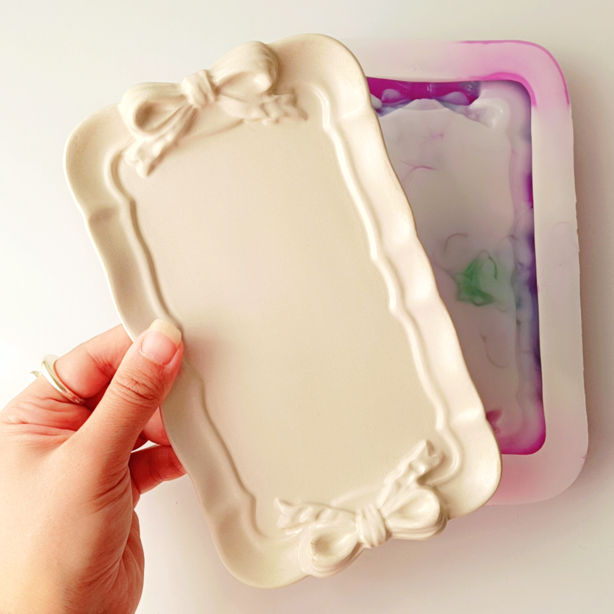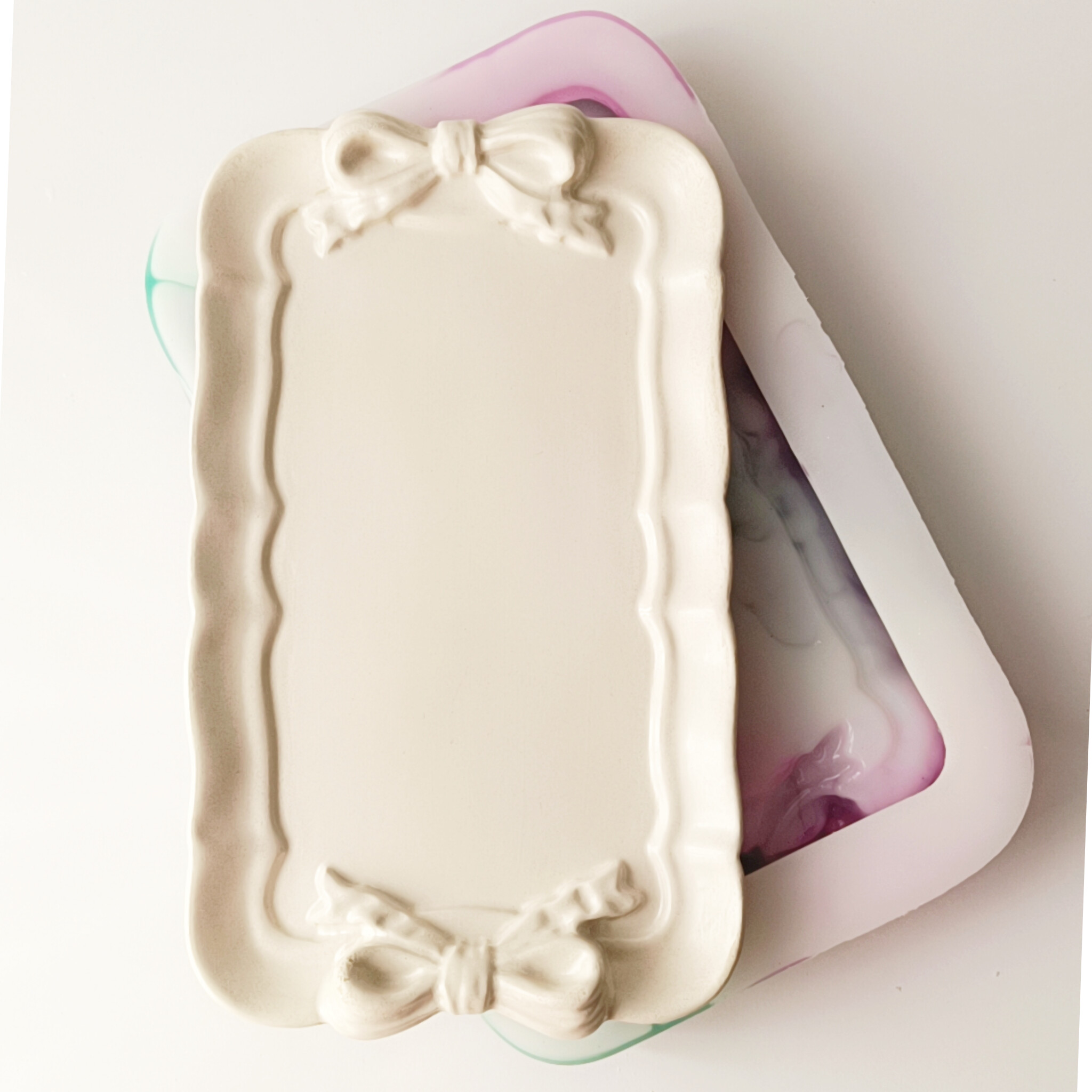 قالب سیلیکونی سینی پاپیونی مستطیل، ترکیبی از طراحی خوشسلیقه و کارایی بالاست که برای ساخت سینیهای دکوراتیو و کاربردی ایدهآل طراحی شده. نمای پاپیونی کنارهها جلوهای رومانتیک و زنانه به محصول نهایی میدهد، در حالی که فرم مستطیل آن فضایی مناسب برای چیدمان چند المان—مثل جاشمعی، گلدان مینیاتوری یا مجموعهای از اکسسوری—فراهم میکند.